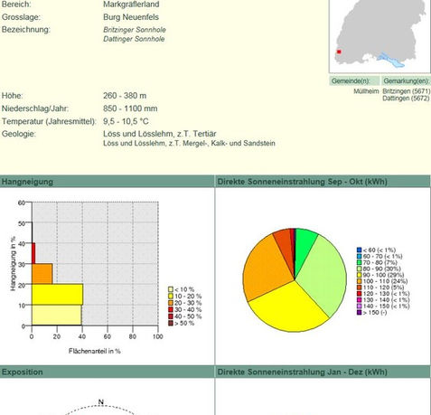 Wie allen Connaisseurs bekannt ist wird der Charakter unserer Weine maßgeblich durch Boden, Geologie und Sonneneinstrahlung geprägt. Genau über diese Kriterien gibt der Standortkundliche Weinbauatlas Baden-Württemberg allen Interessierten genaueste Auskunft. Dieses Werk (s. Link, unten) bringt beste Hintergrundinformationen, kann bei der Auswahl hilfreich sein und erhöht somit letztlich die Freude an einem gut gewählten edlen (badischen) Wein.